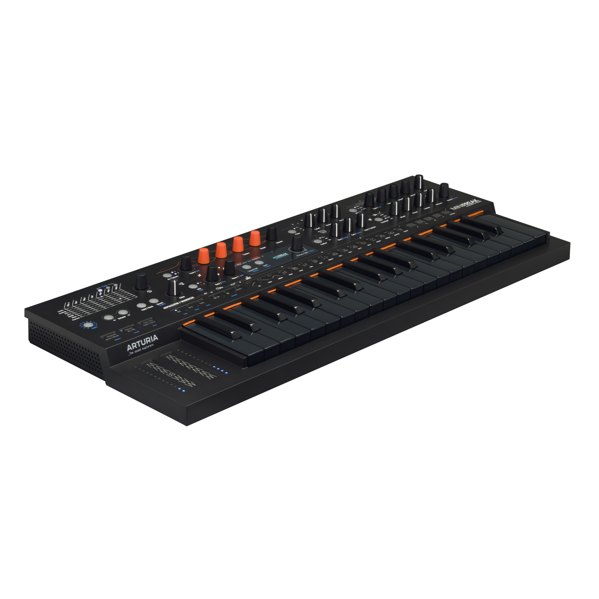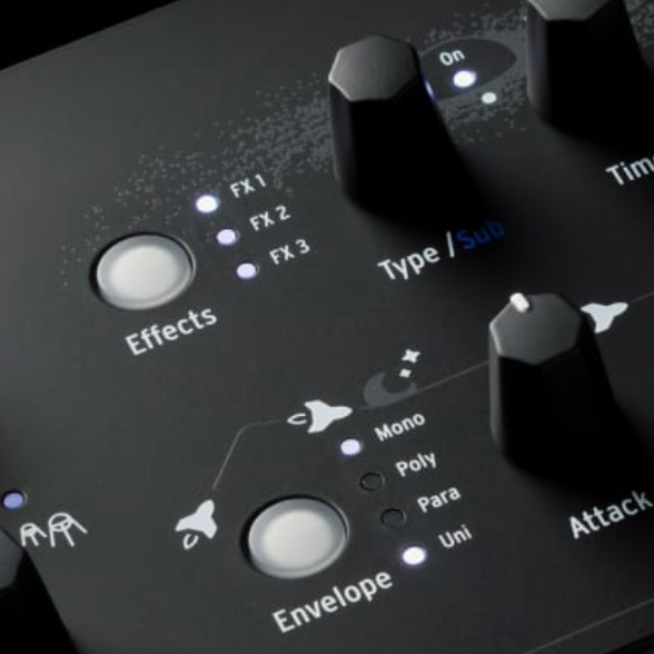 Discover a synth with a striking all-black exterior, decorated with stylish and characterful graphics that reflect the controls.