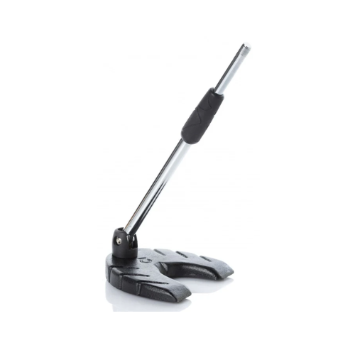 Table base with telescopic microphone stand. Loaded nylon sleeve. Dovetail cast iron base with anti-slip and anti-vibration rubber feet. Black color.