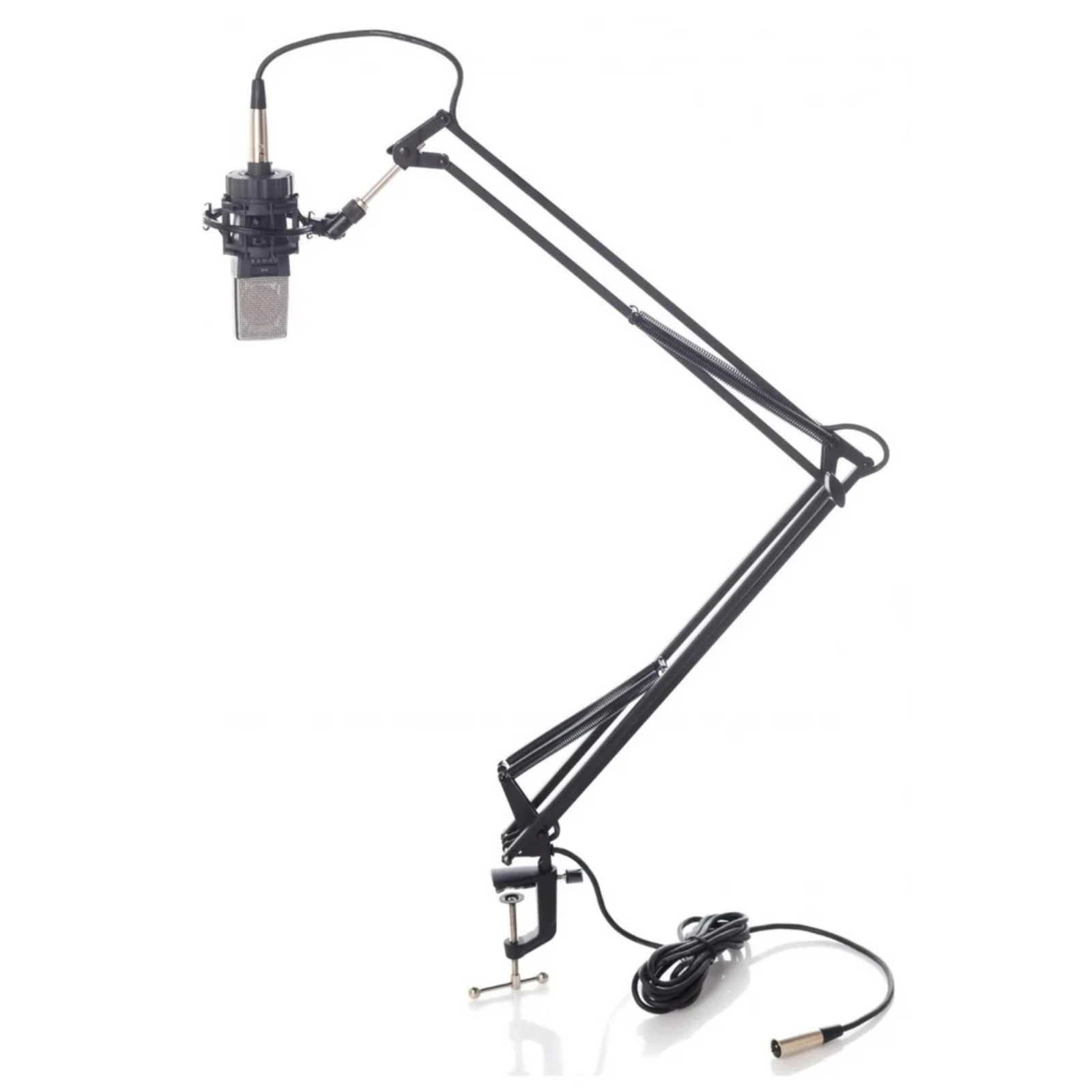Microphone stand with flexible arm for radio studios or multimedia stations. Adjustable table mount up to 55 mm. Threaded adapter and assembled microphone cable included.
