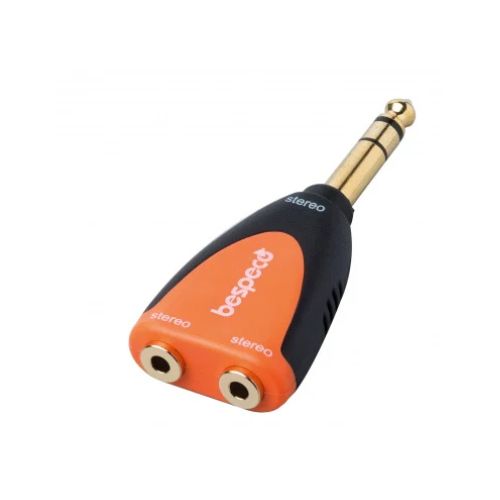 Bespeco SLAD230 - 6.3 mm stereo jack plug to 2 x AUX 3.5 mm stereo jack (female) socket adapter