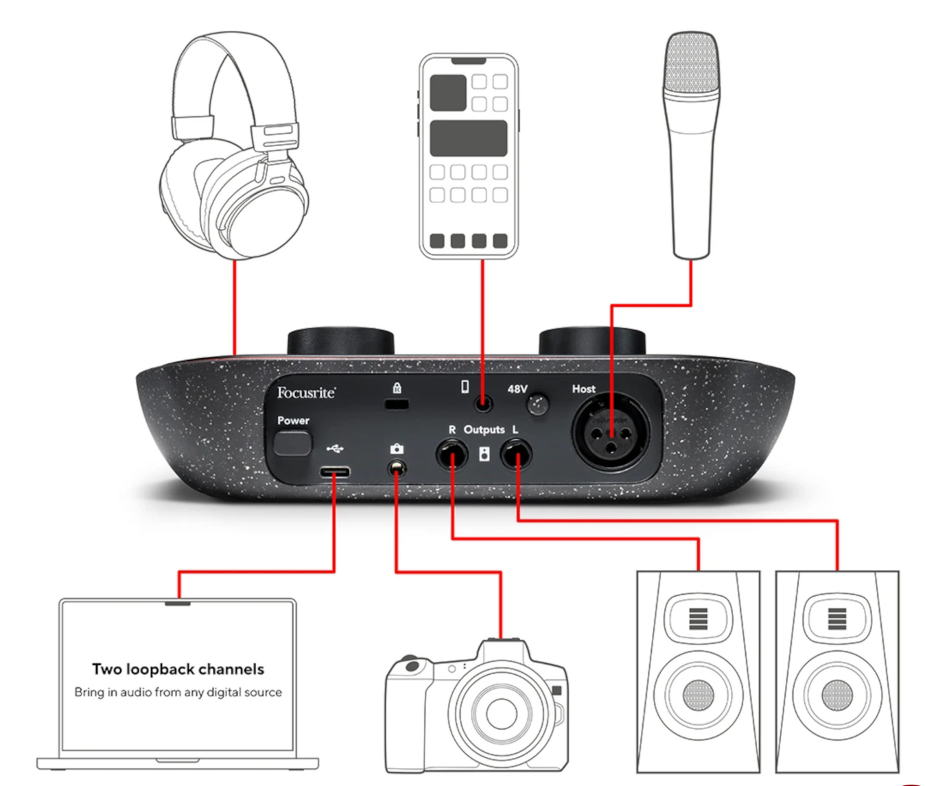 2 x 1/4" TS, 1 x 1/8" TRS (camera out)
