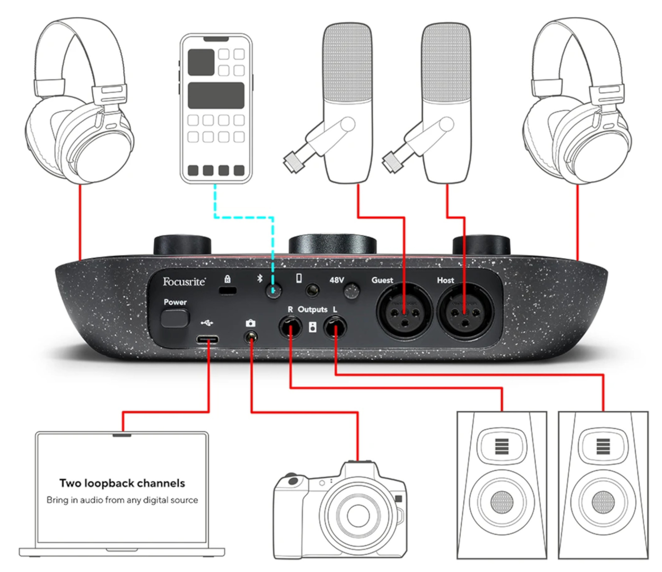 2 x 1/4" TS, 1 x 1/8" TRS (camera out)
