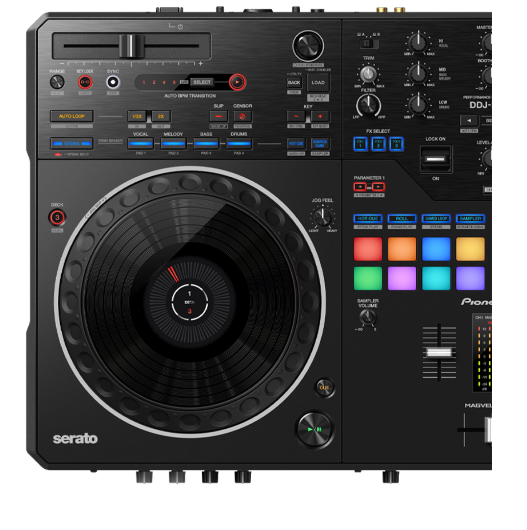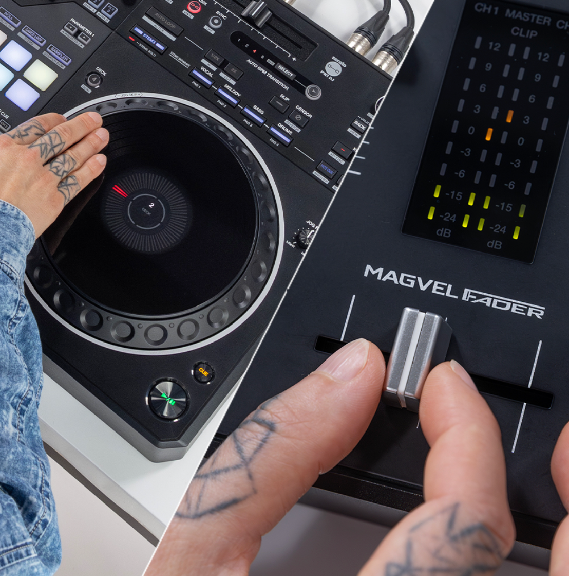 Large jog wheels and MAGVEL FADER for dynamic scratching