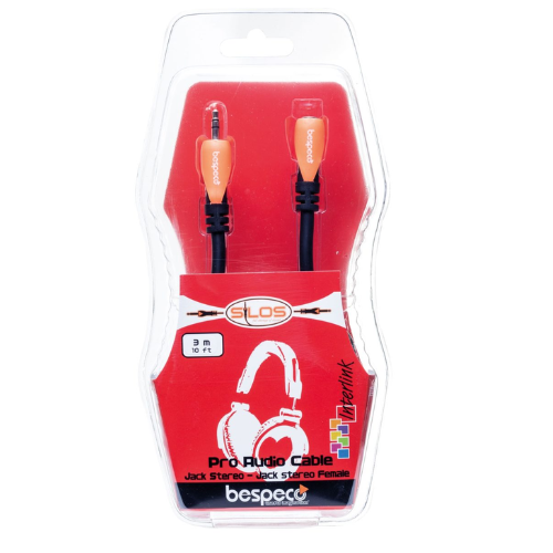 Extension cable – Ø 3,5 mm stereo jack – Ø 3,5 mm stereo jack socket. Black color,